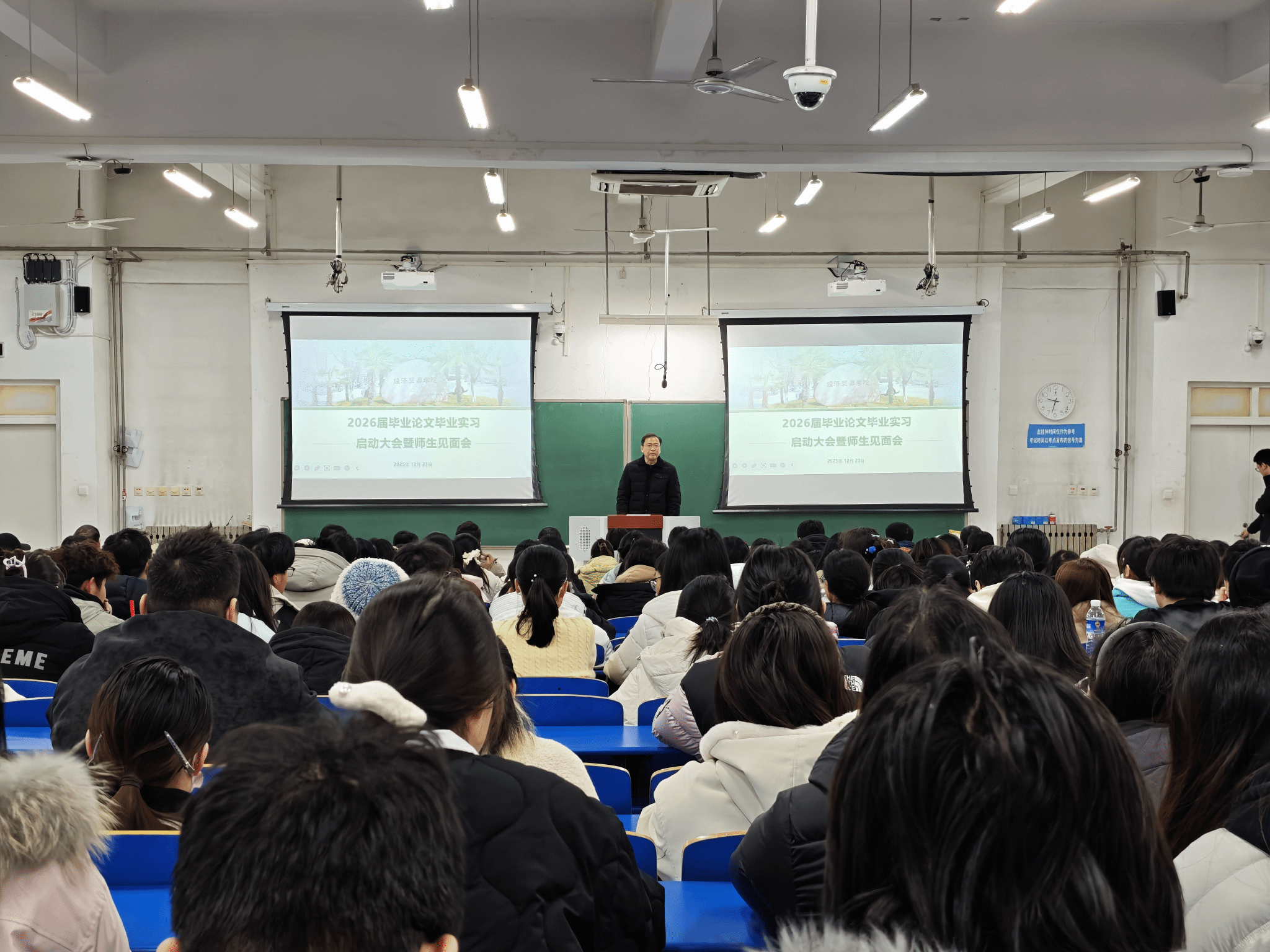根据学校相关工作要求,12月23日上午,经济贸易学院在3号楼101教室召开2026届本科毕业论文、毕业实习启动大会暨师生见面会。会议由副院长郭力主持,2026届全体本科毕业生及毕业论文指导教师参加了会议。