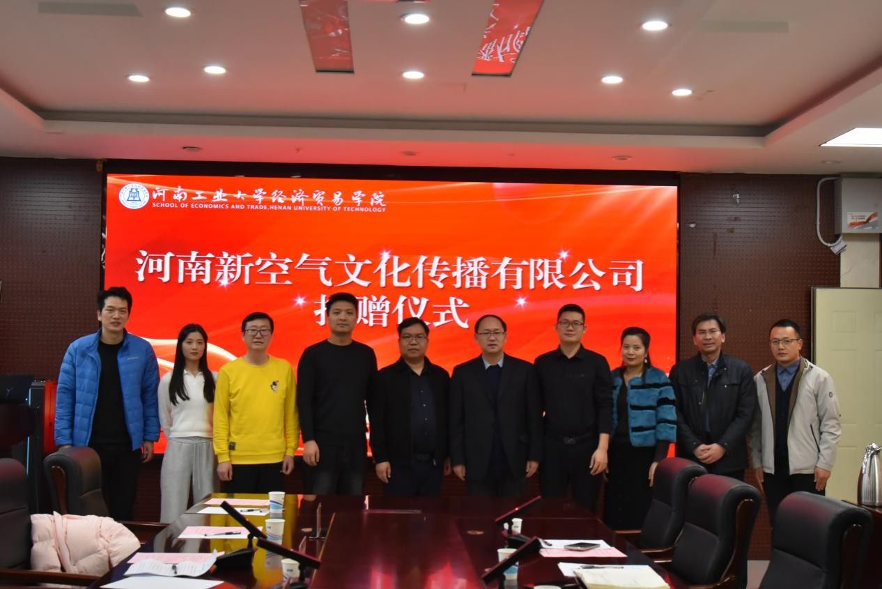 2025年12月16日下午,经济贸易学院与河南新空气文化传播有限公司于博识楼3501会议室举行捐赠仪式。河南新空气文化传播有限公司董事长李建科、策划总监张胜威、行政总监刘多多,河南工业大学校友与基金工作办公室...