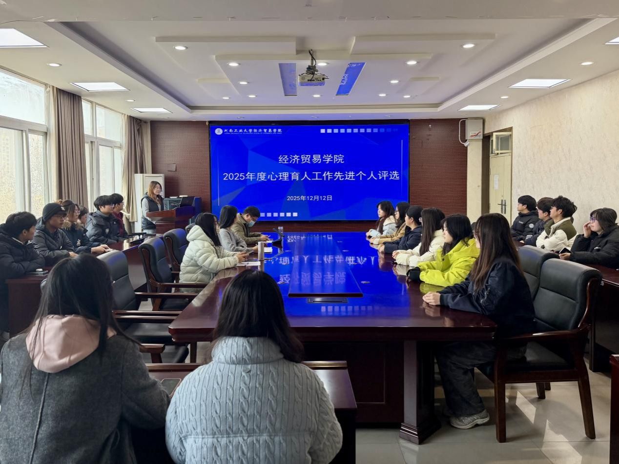 为深入推进心理健康教育工作,充分发挥学生骨干在心理健康教育中的桥梁纽带作用,12月12日,经济贸易学院于博识楼3501教室举行2025年度心理育人工作先进个人评选答辩会。院学工办主任张福勇、团委书记王秋瑾、辅...