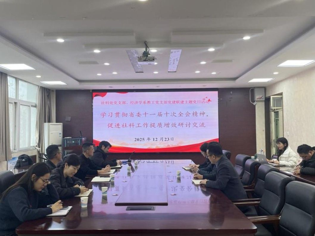 12月23日下午,社会科学处党支部与经济学系教工党支部在博识楼3501会议室共同开展“学习贯彻省委十一届十次全会精神,促进社科工作提质增效研讨交流”党建联建主题党日活动,以“党建+社科”深度融合为切入点,共...