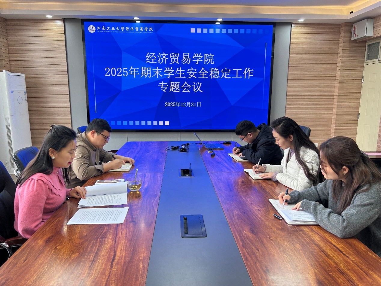 为深入贯彻落实学校关于校园安全稳定工作的决策部署,切实筑牢期末及假期学生安全防线,2025年12月31日,经济贸易学院在3503会议室召开期末学生安全稳定工作专题会议。学院党委书记高泉、副书记岳鹏珍及全体辅导...