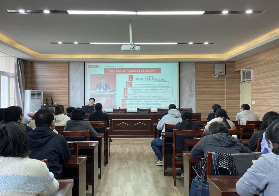 为深入贯彻新时代党的建设总要求,进一步夯实基层党组织建设根基,在学校“双融双促”机关党支部与学院党支部结对共建行动的指导下,10月28日下午,社会科学处党支部与经济学系教工党支部在博识楼3605会议室共同开展党建联建理论学习活动,邀请马克思主义学院院长李海涛教授作“深入贯彻学习党的二十届四中全会精神”专题讲座。讲座由经济贸易学院党委书记李刚主持,社会科学处党员、学院各支部党员参加此次讲座。