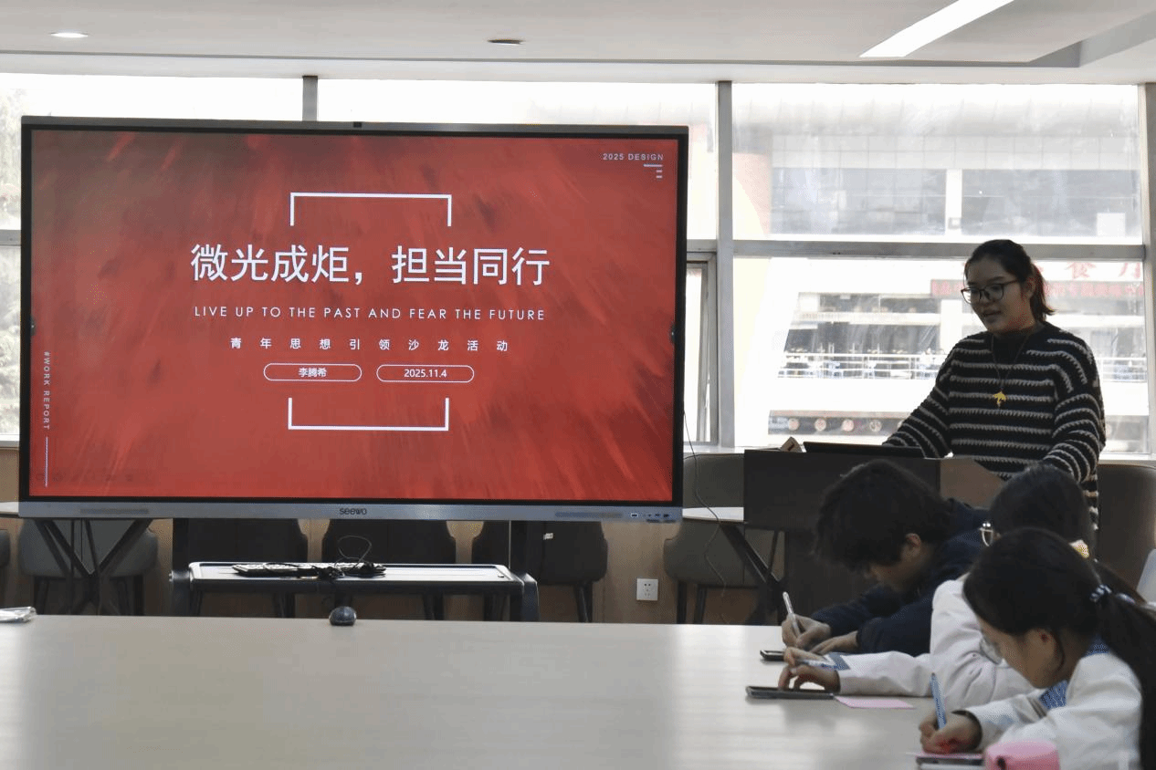 活动开始,李腾希以“微光故事盲盒”开启交流序幕。每位同学领取两张卡纸,匿名写下自己曾做过的一件体现担当的小事。这些承载着真实情感与行动的小故事,在随机分享中传递出平凡善举背后的温度与力量,让在场同学感受到“微光”亦可照亮他人。随后,在场同学共同观看了一段CCTV拍摄的短视频,视频聚焦于身边青年的担当事迹,从社区服务到公益行动,从科研攻坚到文化传承,展现了新时代青年在各行各业中勇于担当、积极作为的精神风貌。短片引发了同学们的强烈共鸣,也让大家对“担当”一词有了更直观和深刻的理解。