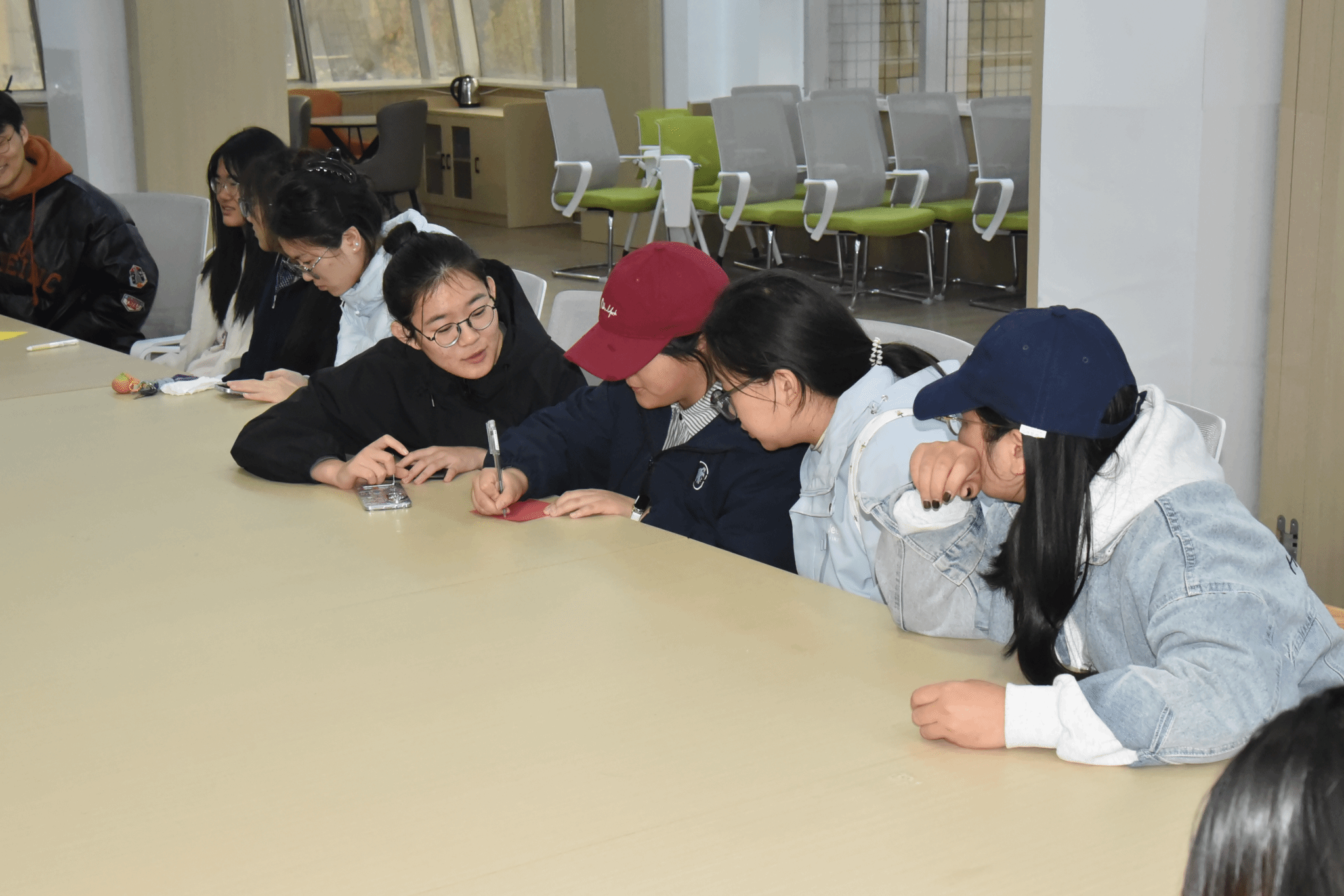在“人生选择题”互动演练环节中,同学们以小组为单位对面讨论,围绕“名校vs专业”“稳定vs梦想”等困境快速决策,分享不同的见解。各小组还自主设计了若干问题,在各组间进行交换作答。这一环节不仅让学子们跳出自身视角审视选择,更在“替他人做决定”的过程中,深化了对“信念支撑选择”的认知,推动大家进一步明确自身价值取向。