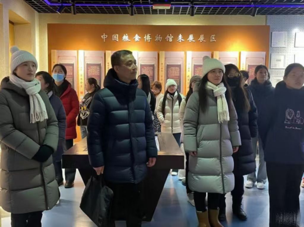 为深入学习贯彻习近平新时代中国特色社会主义思想,强化入党积极分子的党性修养与使命担当。2025年12月11日下午,经济贸易学院组织第43期入党积极分子在中国粮食博物馆开展以“悟粮脉初心,筑信仰根基”为主题的实践教学活动,活动由院关工委副主任杨茂和辅导员张瑞玲带队。
