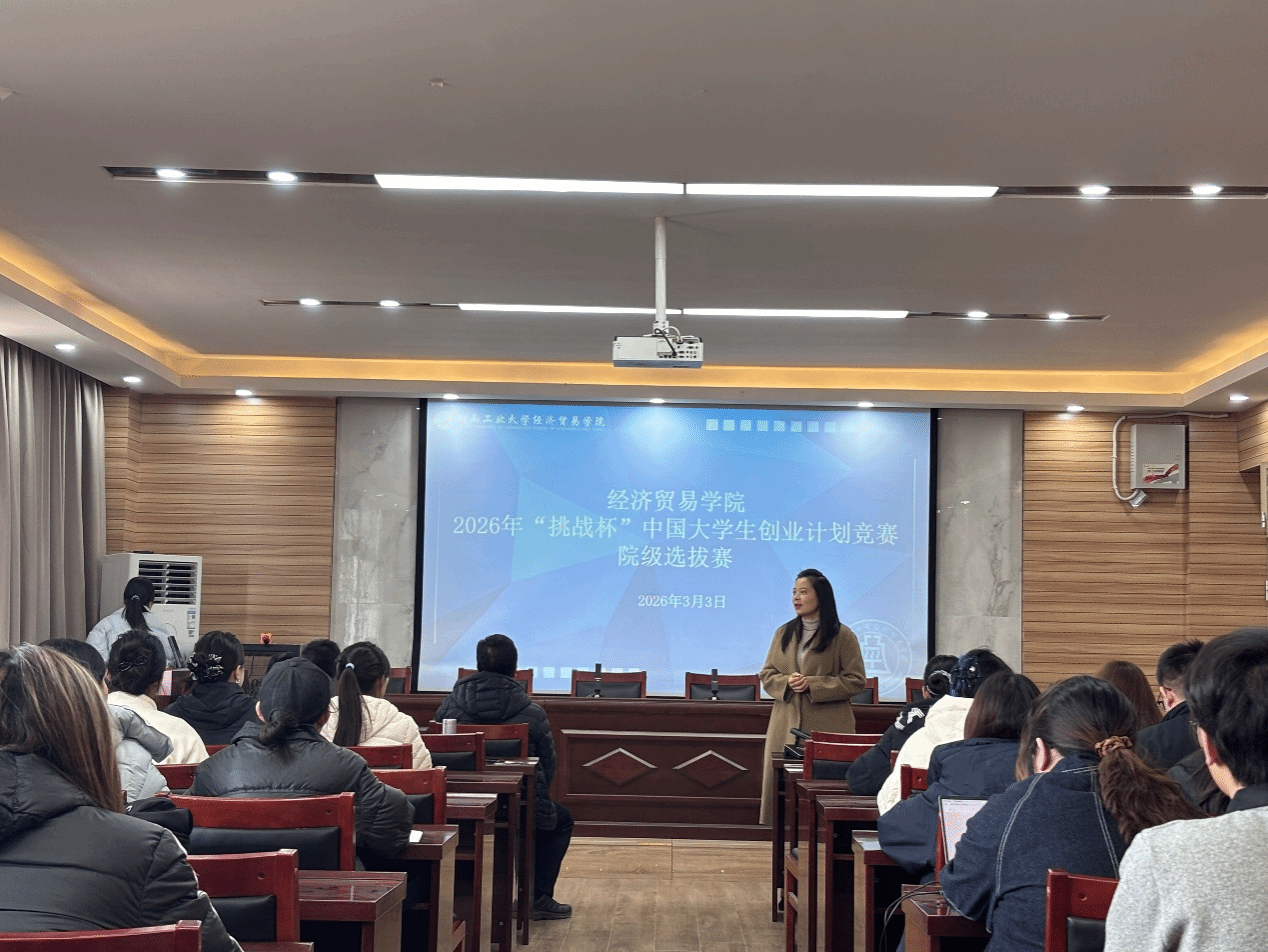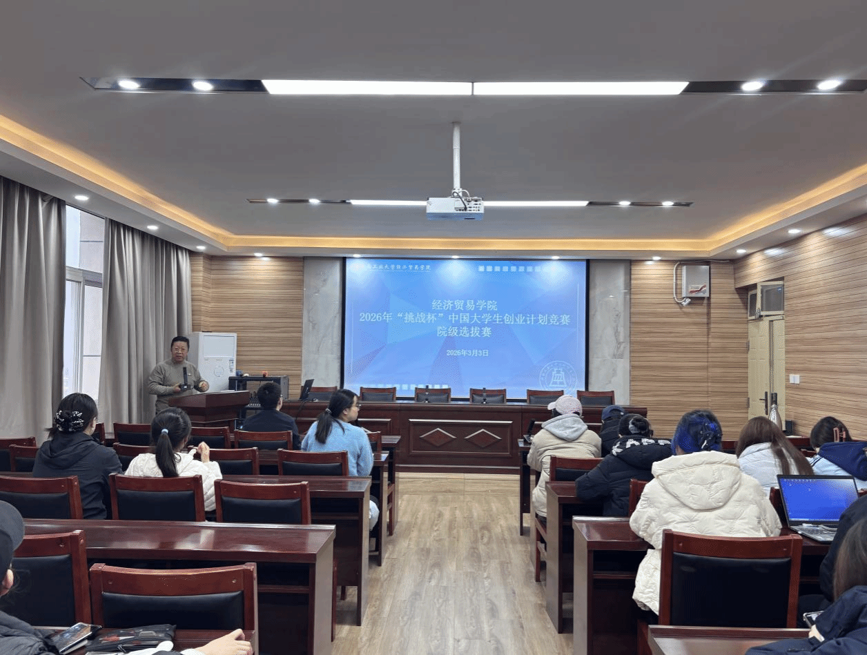 为进一步激发大学生创新创业热情,提升创新思维、创业能力和实践水平,选拔培育优秀项目冲击更高层级赛事。3月3日下午,经济贸易学院于博识楼3605会议室举行2026年“挑战杯”中国大学生创业计划竞赛院级选拔赛。学院党委副书记岳鹏珍出席活动并讲话,功勋导师翟书斌老师、优秀指导老师李治老师担任本次选拔赛评委,各参赛团队成员、学生代表共同参加本次活动。会议由学院团委书记王秋瑾主持。