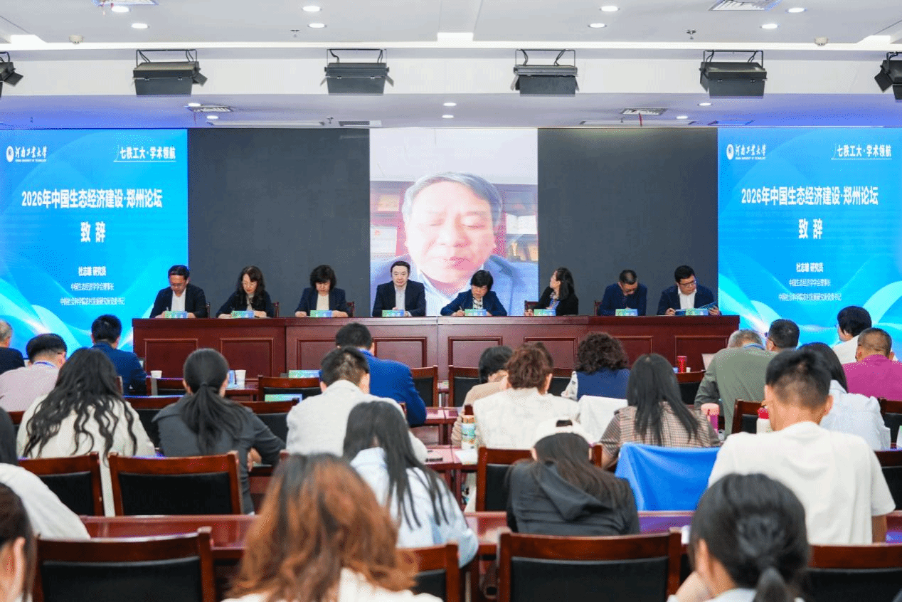 4月18日,由中国生态经济学学会生态经济教育专业委员会、河南工业大学主办,经济贸易学院承办的“2026中国生态经济建设·郑州论坛”在我校成功召开。校长吴智深,中国生态经济学学会生态经济教育专业委员会主任委员、湖北第二师范学院原党委书记杨鲜兰,副主任委员、鄂尔多斯应用技术学院副校长金良等出席会议。本次论坛吸引了来自华中师范大学、贵州大学、南京师范大学、宁夏大学、黑龙江省社科院等众多高校及科研院所的专家学者和研究生参加。开幕式由河南工业大学经济贸易学院院长李文启主持。